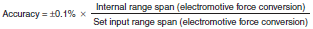 | Accuracy (25 ° C) | ± 0.1% (of internal range full span) As shown in the following equation, the accuracy depends on the ratio of the selected internal range (0 to 4) span to the set input range span. ![]() | ||